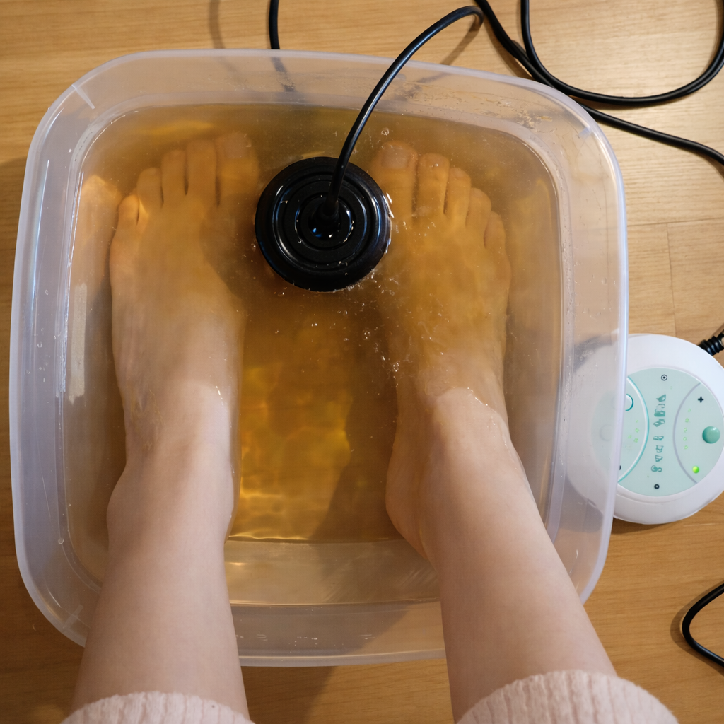 El cambio de color no significa necesariamente toxinas del cuerpo. Parte del efecto se debe a una reacción química entre los iones generados y los minerales del agua. El verdadero efecto de detoxificación se logra cuando los iones producidos por el aparato son absorbidos por tu cuerpo.
